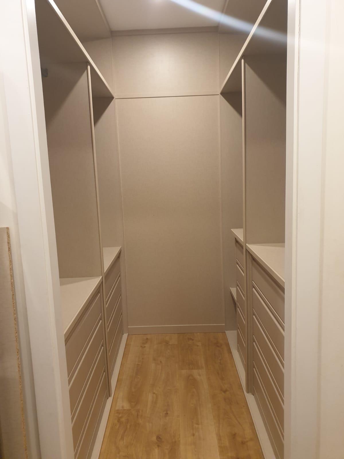 Diseñamos el interior de armario a medida a su gusto, adaptándonos a sus necesidades mediante baldas, colgadores, cajoneras, pantaloneros y otros accesorios.